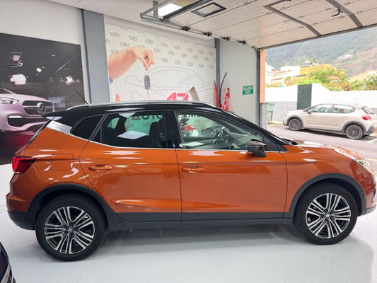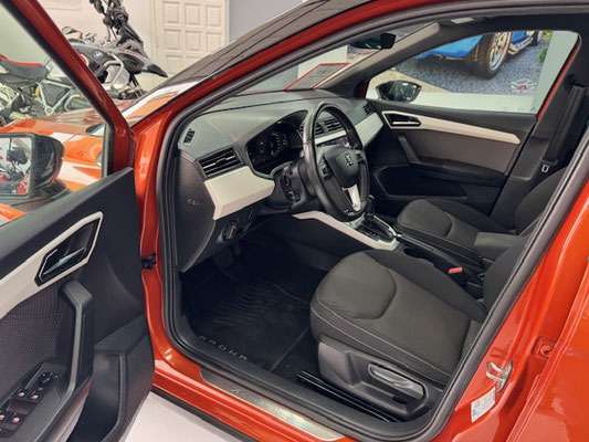 Seat Arona Xcellence, dispone de: - Automático - Cuadro de instrumentos digital - Cámara trasera - Sensores de aparcamiento delanteros y traseros - Keyless - Sensor de aproximación - Auto hold (ayuda en pendiente) - Luces automáticas - Alerta de cambio involuntario de carril - Pantalla táctil - Bluetooth - Espejos retrovisores eléctricos - Start-stop - Cristales tintados - Llanta - Volante multifunción - Navegador - Doble entrada usb - Entrada auxiliar Precio traspasado con un año de garantía. Posibilidad de financiación. Recogemos coche o moto como parte de pago.